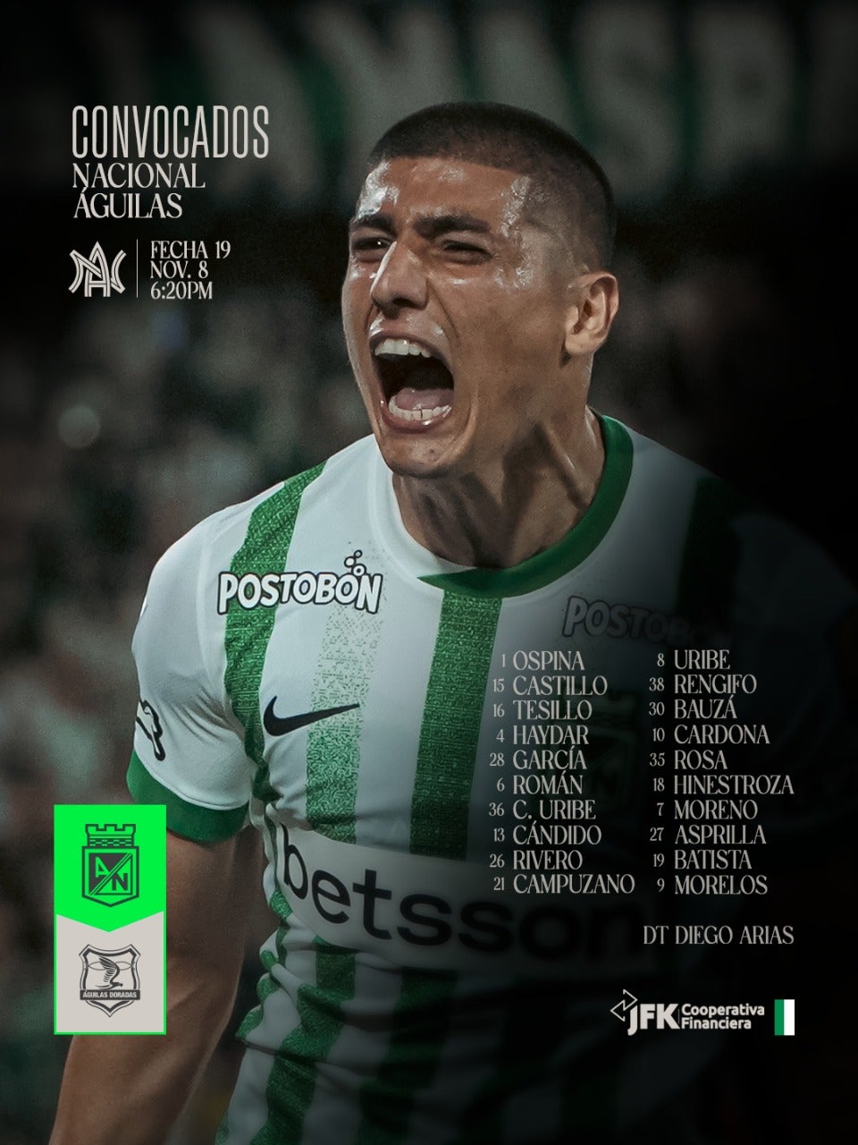 El cuadro paisa reveló sus convocados para el juego ante Águilas Doradas y pese a que tendrá regresos importantes, confirmó una lesión que dejó preocupado a más de un hincha 'verdolaga'.