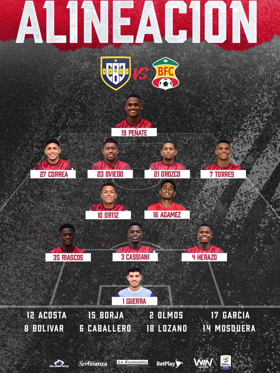 Alineaciones de Boca Juniors de Cali contra Barranquilla F.C: