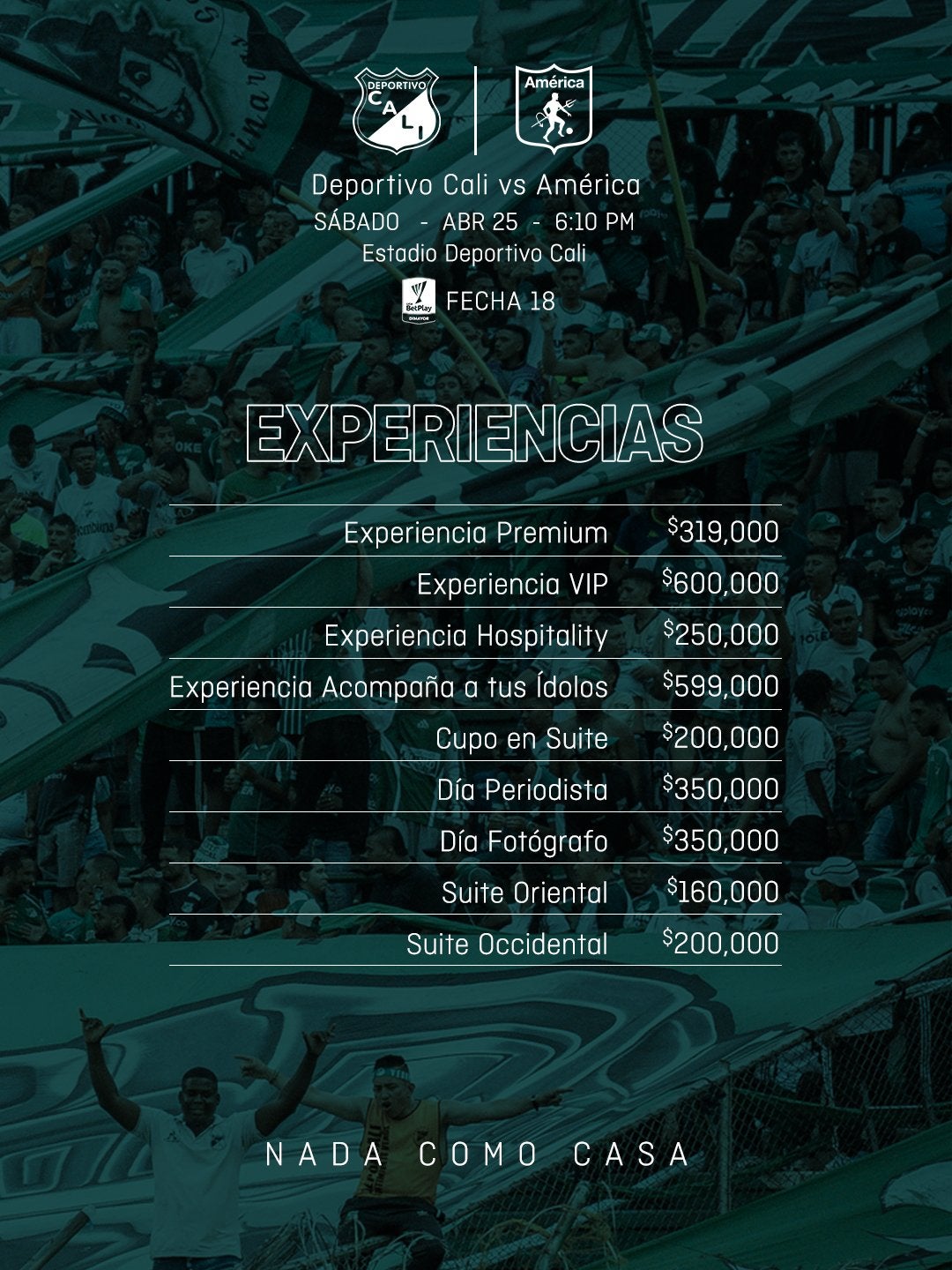 Finalmente, con la boletería activa para las nueve localidades y los paquetes de Experiencias disponibles para quienes buscan algo más que 90 minutos, todo está listo para que el Estadio Deportivo Cali viva una edición vibrante del clásico ante América.