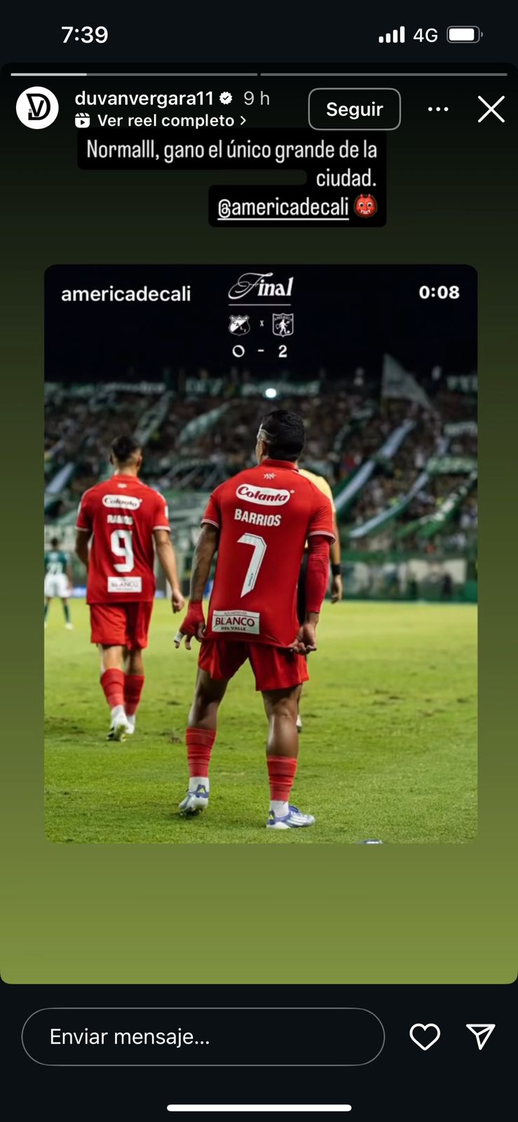 Duván Vergara se reportó con un mensaje tras la victoria de América ante Cali