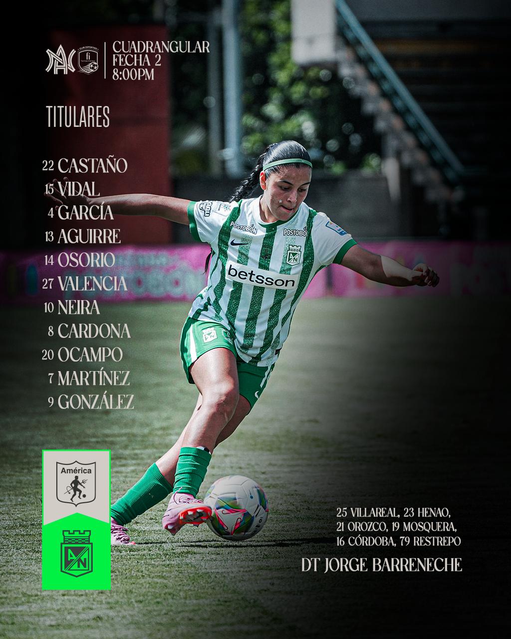 Alineaciones de América de Cali Femenino contra Atlético Nacional Femenino: