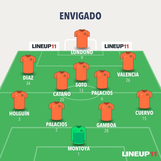 Envigado buscó profundidad con un pase de Luis Díaz, pero Bayron Garcés partió en posición adelantada y la jugada fue invalidada por fuera de juego.