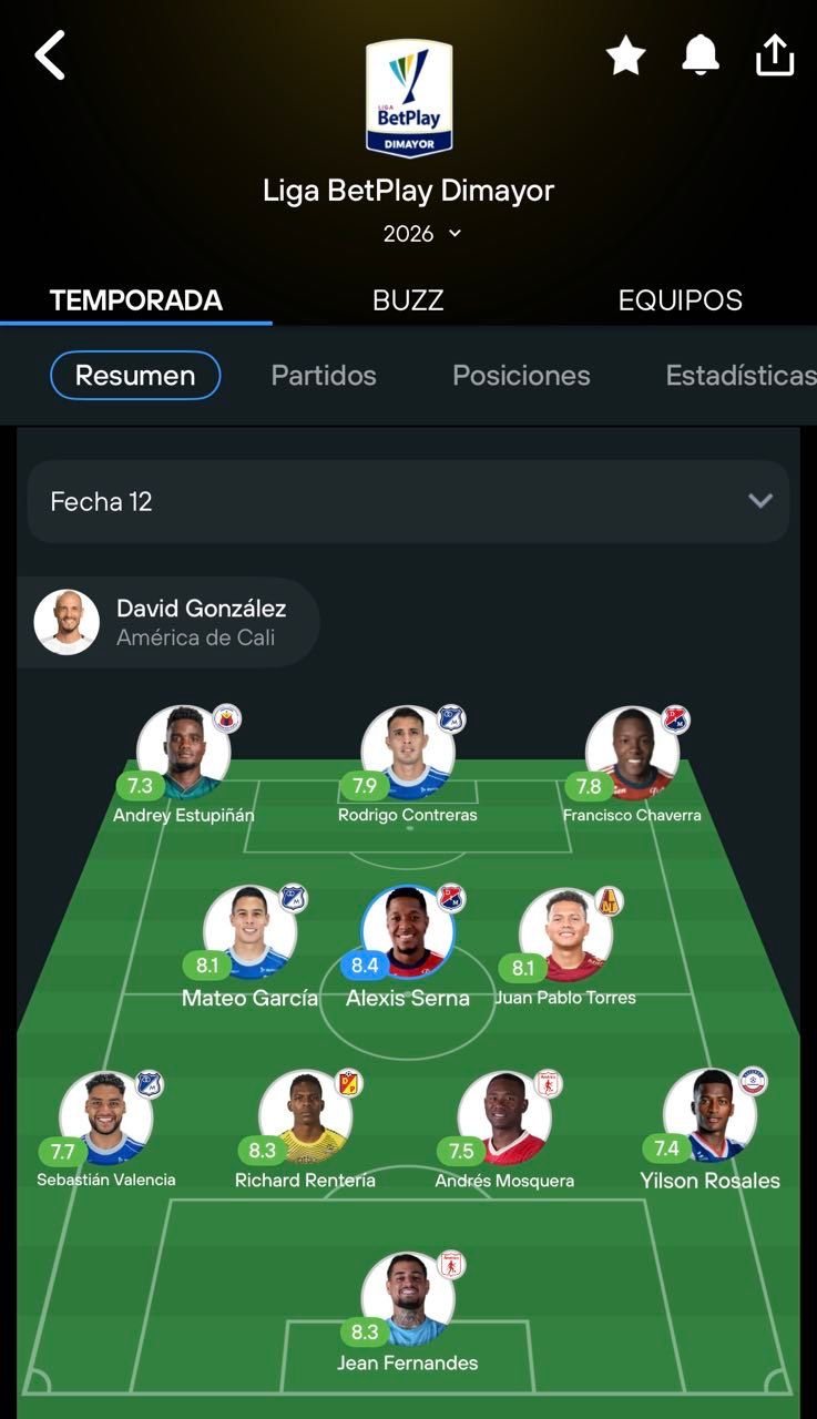 El resto de la fecha también dejó grandes actuaciones individuales. Entre ellas, Alexis Serna de Medellín brilló con una calificación de 8.4 tras una gran actuación defensiva, y Jean Fernandes de América de Cali también se destacó con una calificación de 8.3.