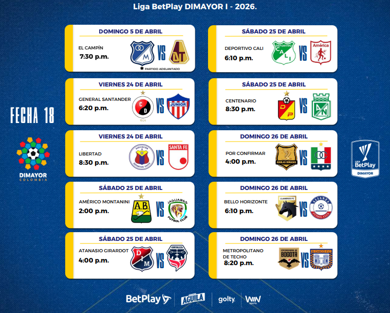 Con el formato definido y la programación prácticamente completa, la Liga BetPlay DIMAYOR 2026‑I se alista para dar inicio a una nueva carrera por el título.