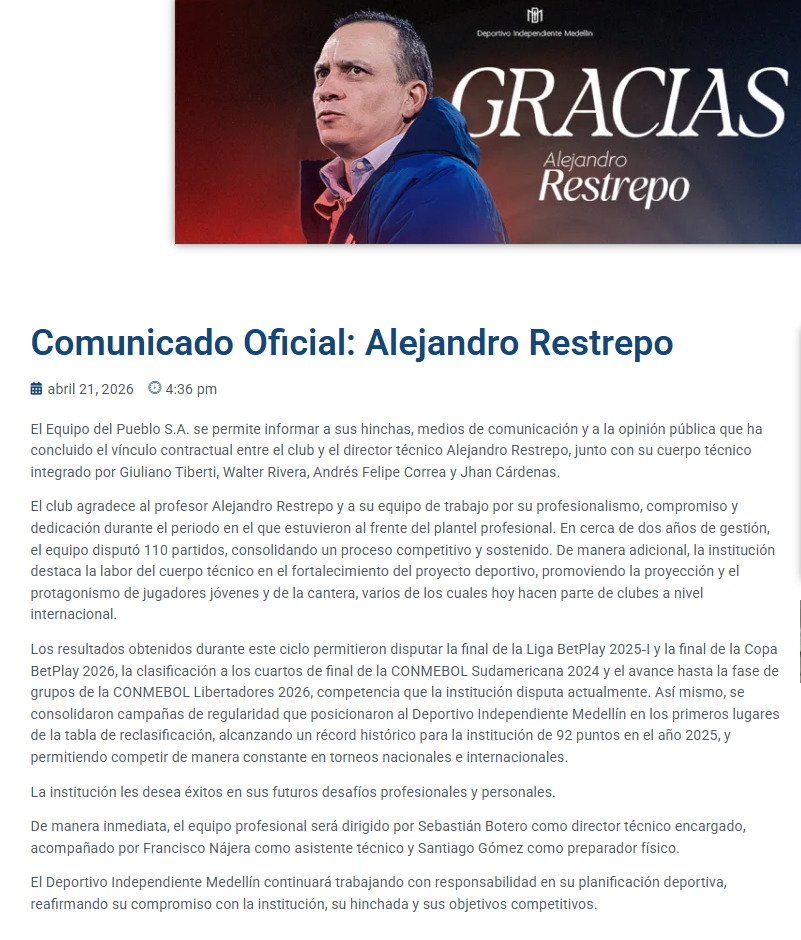 Independiente Medellín se prepara para un cambio en su dirección técnica en un momento clave del torneo, donde cada decisión puede marcar el rumbo del semestre.