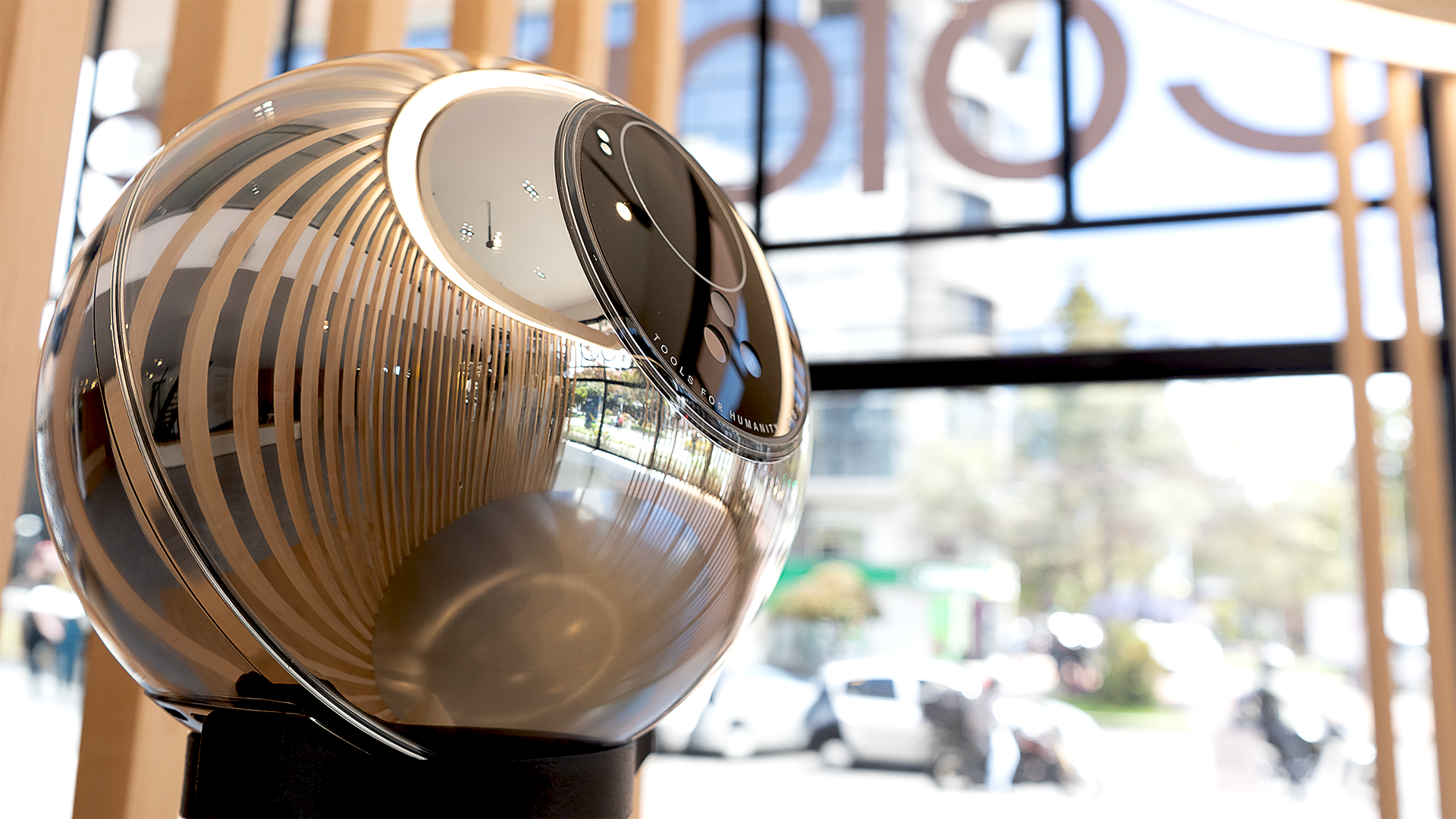En el centro del espacio sigue estando el Orb, una cámara avanzada que verifica la unicidad de una persona, manteniendo todos los datos biométricos privados y almacenados únicamente en el dispositivo del individuo.